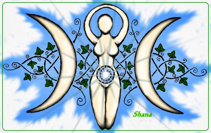 Como dije anteriormente, la diosa es conocida en tres aspectos que corresponden a los tres estados y caracteres humanos de la vida: la doncella, la madre y la abuela o “vieja sabia”. La trilateralidad de la diosa está en directa relación con las fases de la Luna: